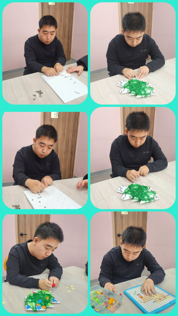 오전에는 심리 센터에 다녀왔습니다. 우드락 할핀 스트링아트 트리를 하며 양손 협응, 주의 집중, 시지각 향상, 성취감을 향상 시켜보았습니다.