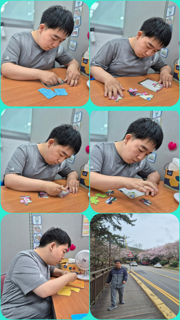 오전에는 새로 구입한 퍼즐에 관심을 보여 퍼즐 맞추기를 하였습니다.