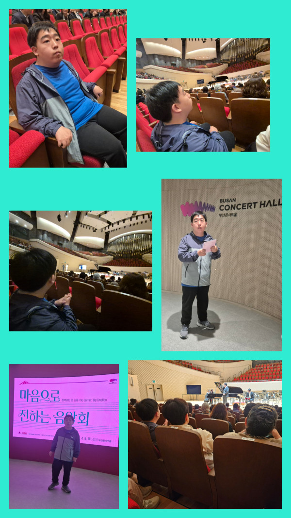장애인들로 구성된 오케스트라의 멋진 연주를 집중하여 관람하는 진지한 모습을 보였습니다.