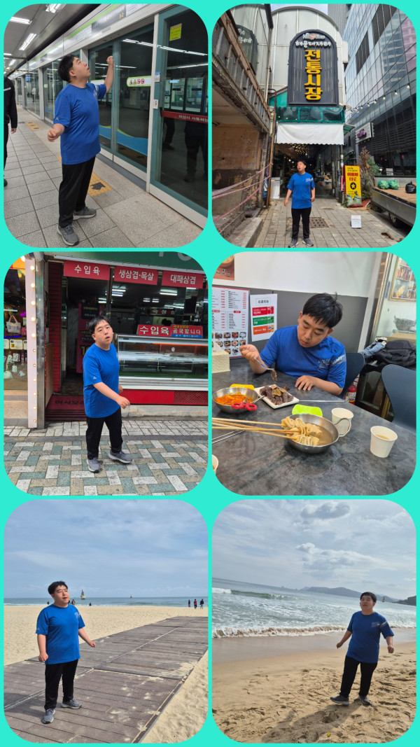오후 해운대 시장을 둘러보고 해운대 해수욕장을 시원한 바람을 즐기며 산책 하였습니다.