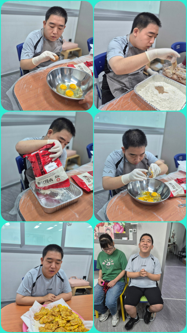 미리 해동해둔 동태에 부침가루와 계란을 묻혀 팬에 굽는 활동을 진행하였습니다.