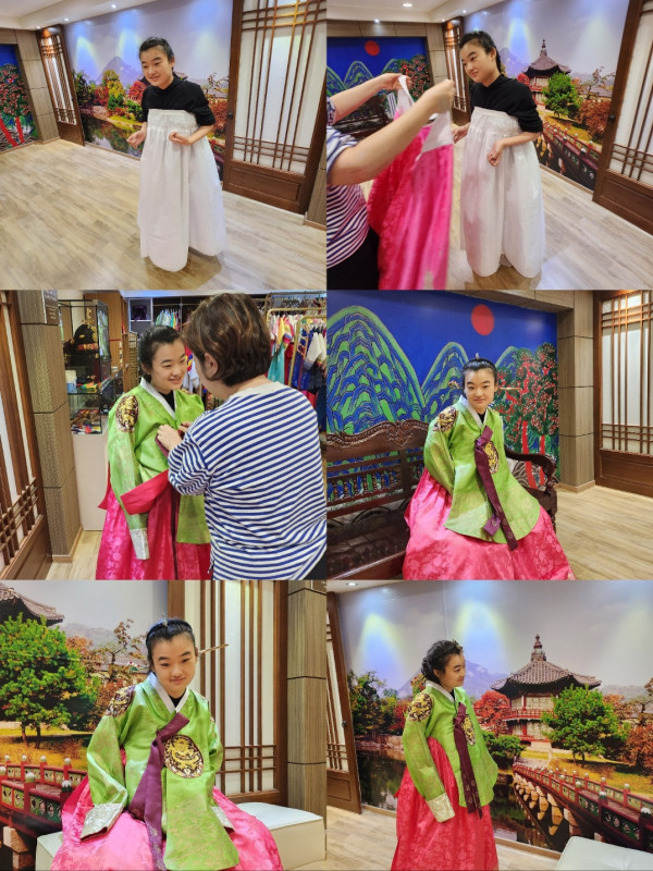 제일 작은 한복이 많이 커서 선생님이 당황하셨습니다
