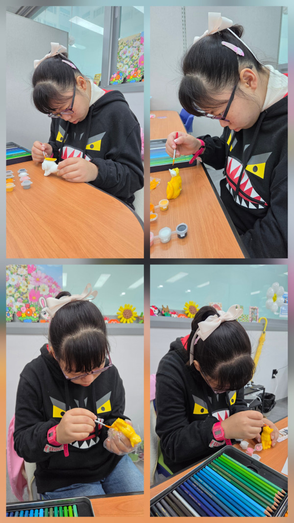 나만의 고양이 만들기 시간으로 고양이 모형에 색깔을 칠해보는 활동 진행했습니다.