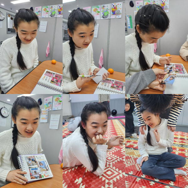 앨범에 사진과 스티커를 붙여 예쁘게 꾸며보고