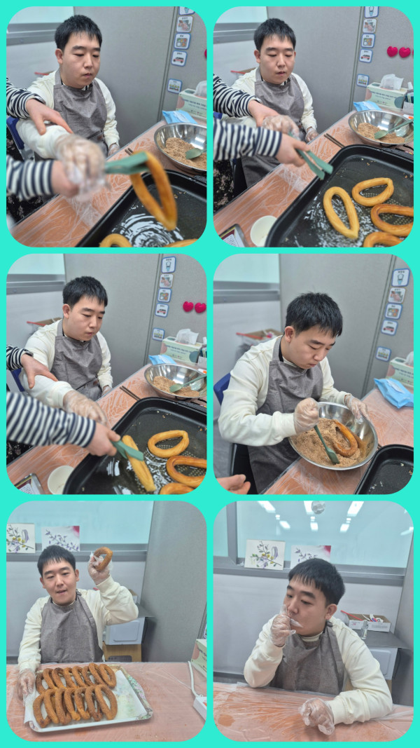 오전에는 요리 활동으로 츄러스 만들기를 하였습니다. 튀기고 계피설탕도 묻혀서 먹어보았습니다.