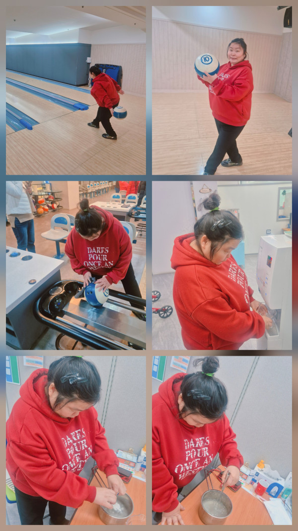 오후 센터 인근 볼링장에서 볼링을 친 후 센터에 와서 곤약을 만드는 활동을 하였습니다