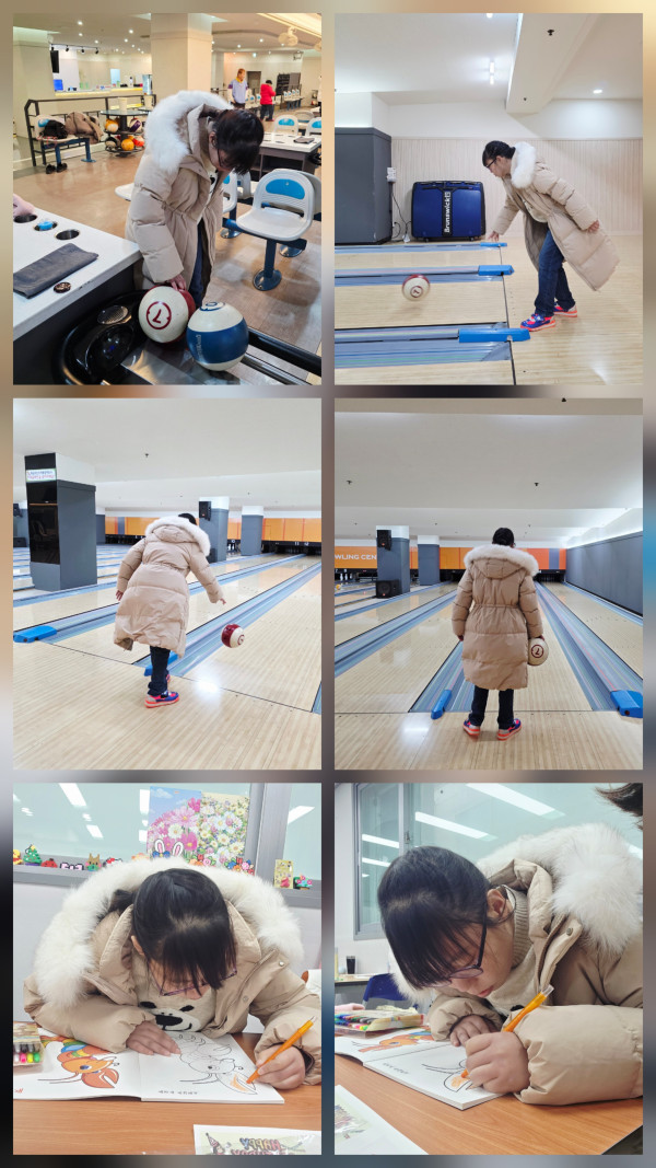 오랜만에 볼링장 방문해서 볼링게임 즐기고 이후 좋아하는 바다생물 캐릭터 색칠하기 시간을 가졌습니다.