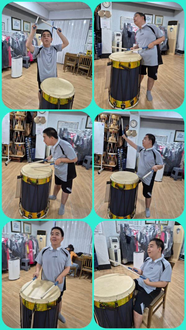 신나는 음악 소리에 맞추어 북을 두드리며 즐거운 시간을 보냈습니다.