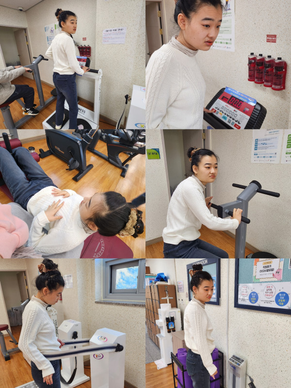 쉐이크보드를 타며 다리근육을 길러보고 크런치로 복근운동을 해보았습니다