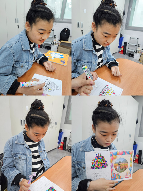 도트펜을 이용해 생일 편지를 콕콕콕 알록달록 예쁘게 꾸며보았습니다