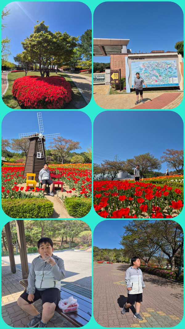 오후에는 울산 대 공원에서 만개한 튤립을 보고 여러 봄 꽃들을 구경하며 외부 활동을 즐겼습니다.