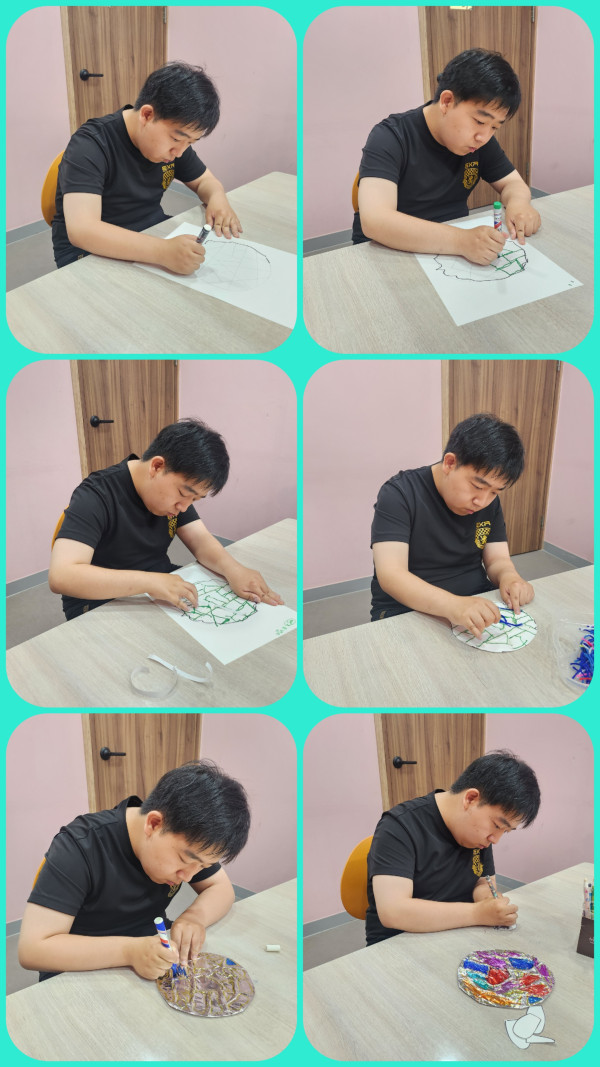 오전에는 심리치료센터를 다녀왔습니다. 호일 프로타주,거북이 만들기를 통해 소근육 및 시지각 향상,손 힘 및 손떨림 조절 기능향상을 훈련하였습니다.