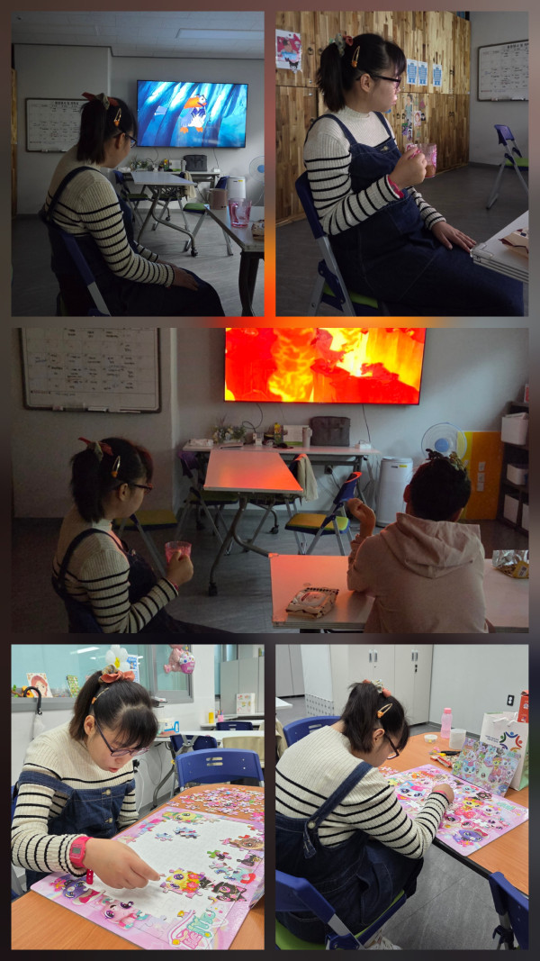 영화 <라이온킹> 아기 사자에 대해 이것 저것 이야기도 나누며 즐겁게 시청을 하고 좋아하는 티니핑 퍼즐 맞추기 활동 진행했습니다.
